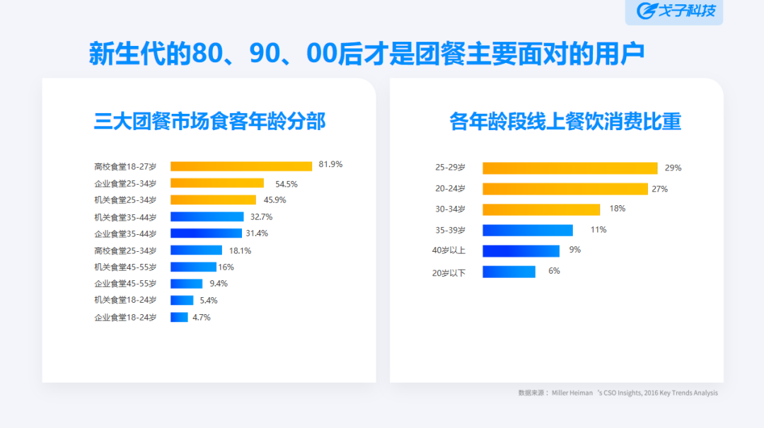 戈子科技認為,現在的時代是一個全新的時代,新生代的80后、90后甚至是00后,才是我們的團餐行業主要面對的消費群體,這一群體從消費理念、消費渠道、消費結構等都發生了根本性的改變,傳統的食堂文化可以基本的服務于他們,但是卻很難滿足于他們的個性化需求。在消費需求跟國家政策倡導的大環境下,我們團餐行業也應當隨之向“智慧化”、“透明化”進行變革。