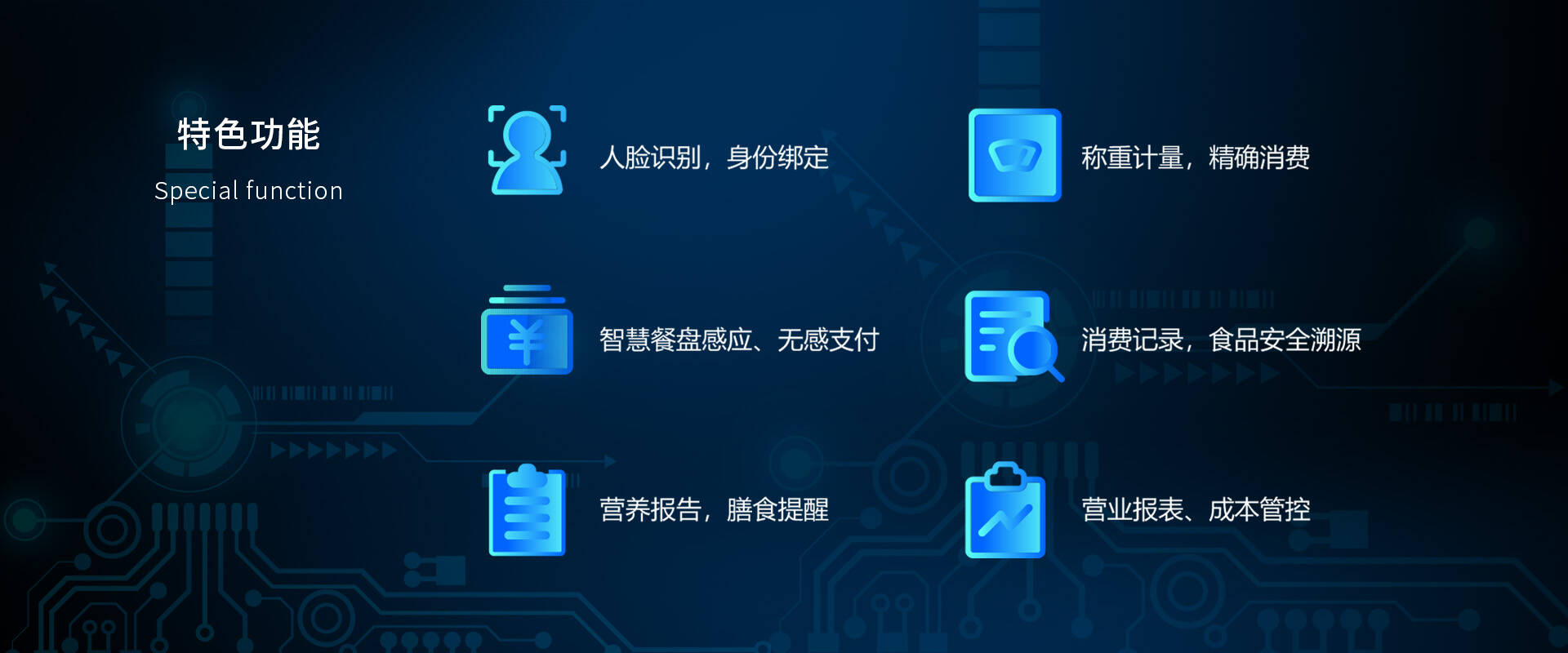 智能稱重結(jié)算系統(tǒng)集成了稱重傳感模塊和RFID讀寫裝置,通過感應(yīng)進(jìn)入讀寫區(qū)域的托盤和菜盆打菜前后的重量變化,計算出取菜菜品重量,實現(xiàn)智能稱重計量,無感自動支付,并通過顯示菜品的營養(yǎng)成分和消費記錄推薦提醒,并為食堂提供管理端進(jìn)行報表分析、稱重設(shè)備管理等平臺,引導(dǎo)就餐者適量取餐,科學(xué)用餐。